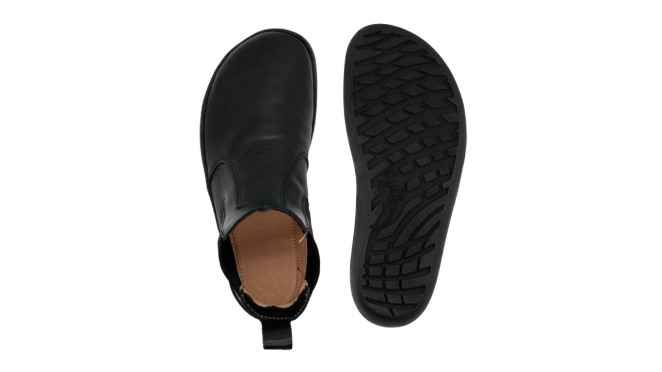 Mit der Uma Grip von Aylla kommt die klassische Chelsea-Silhouette in Barfußversion – für alle, die stilvoll unterwegs sein wollen, ohne auf Bodenkontakt zu verzichten. Das vollnarbige Premiumleder sorgt für einen hochwertigen Look und ein angenehmes Tragegefühl. Dank der praktischen Einstiegshilfe über der Ferse bist du in Sekunden startklar.