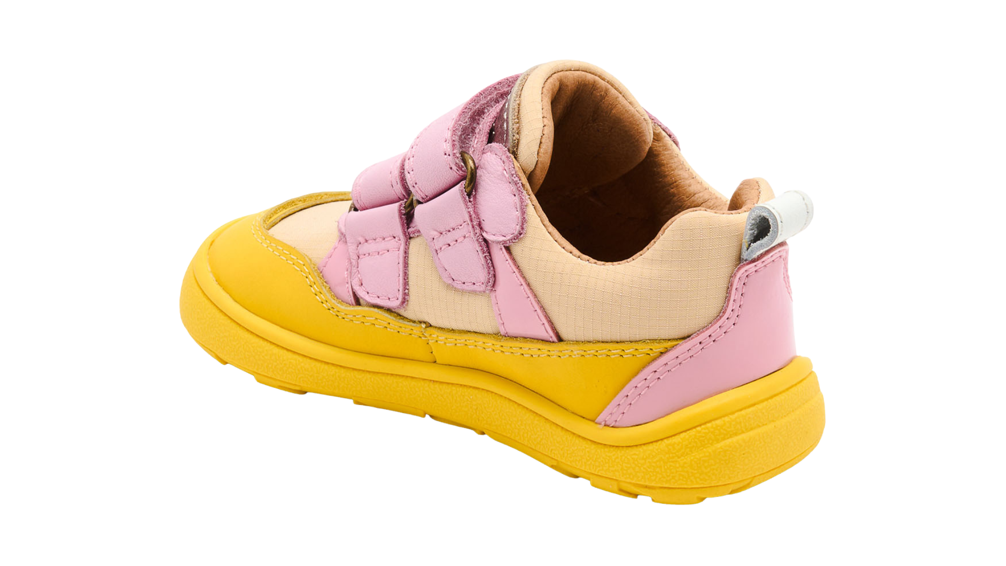 Das Obermaterial aus Leder und Textil sorgt für Strapazierfähigkeit und Komfort. Innen liegt weiches Leder am Fuß und unterstützt ein angenehmes Klima, auch wenn der Tag länger wird. Die flexible Gummisohle gibt Halt auf verschiedenen Untergründen. Dank Klettverschluss lässt sich der Schuh leicht anziehen und sitzt sicher am Fuß. Die herausnehmbare Einlegesohle aus recyceltem Schaum mit Mikrofaser bietet zusätzliche Dämpfung und Atmungsaktivität.