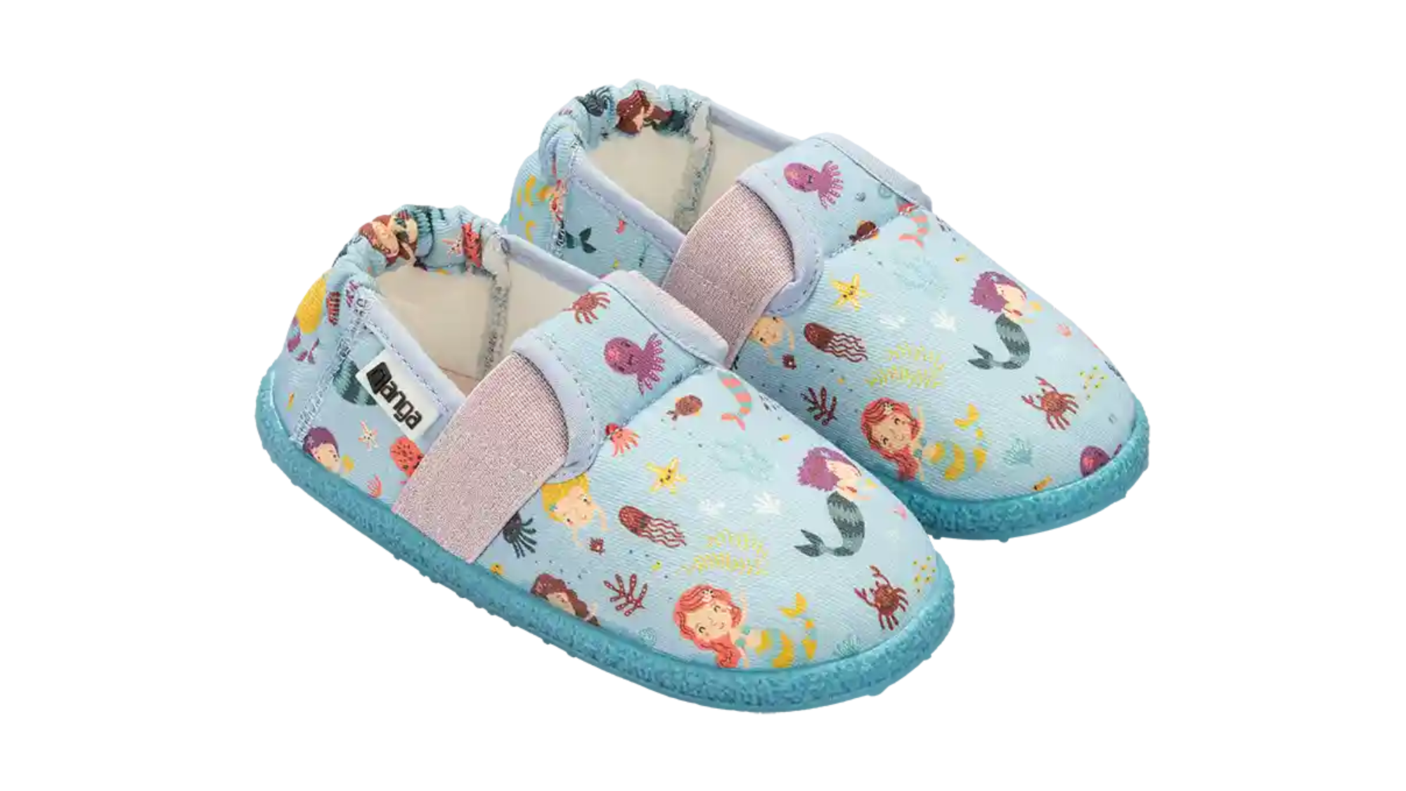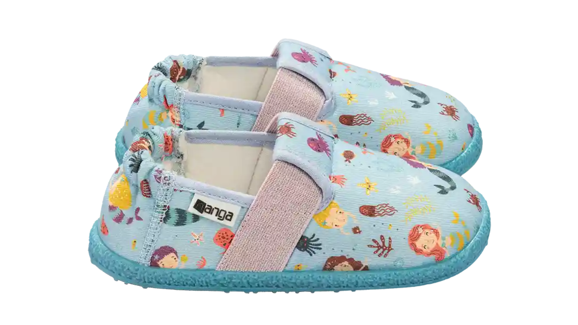 Das maritime Design mit Meerjungfrau, Seesternen und Quallen bringt Fantasie an die Füße. Ideal für Kindergarten, Zuhause oder die erste Entdeckungsrunde nach dem Baden. Die Naturkautschuksohle ist rutschfest und bodennah. So bleibt das Gefühl für den Untergrund erhalten. Genau das, was gesunde Kinderfüße brauchen.
